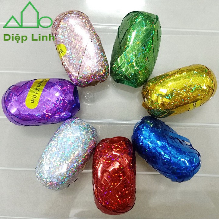 Dây ruy băng kim tuyến trang trí cột bóng lấp lánh.Giúp trang trí cho buổi tiệc thêm sinh động, bằng những sợi dây tua rua được cột vào đuôi bóng thêm đẹp mắt
