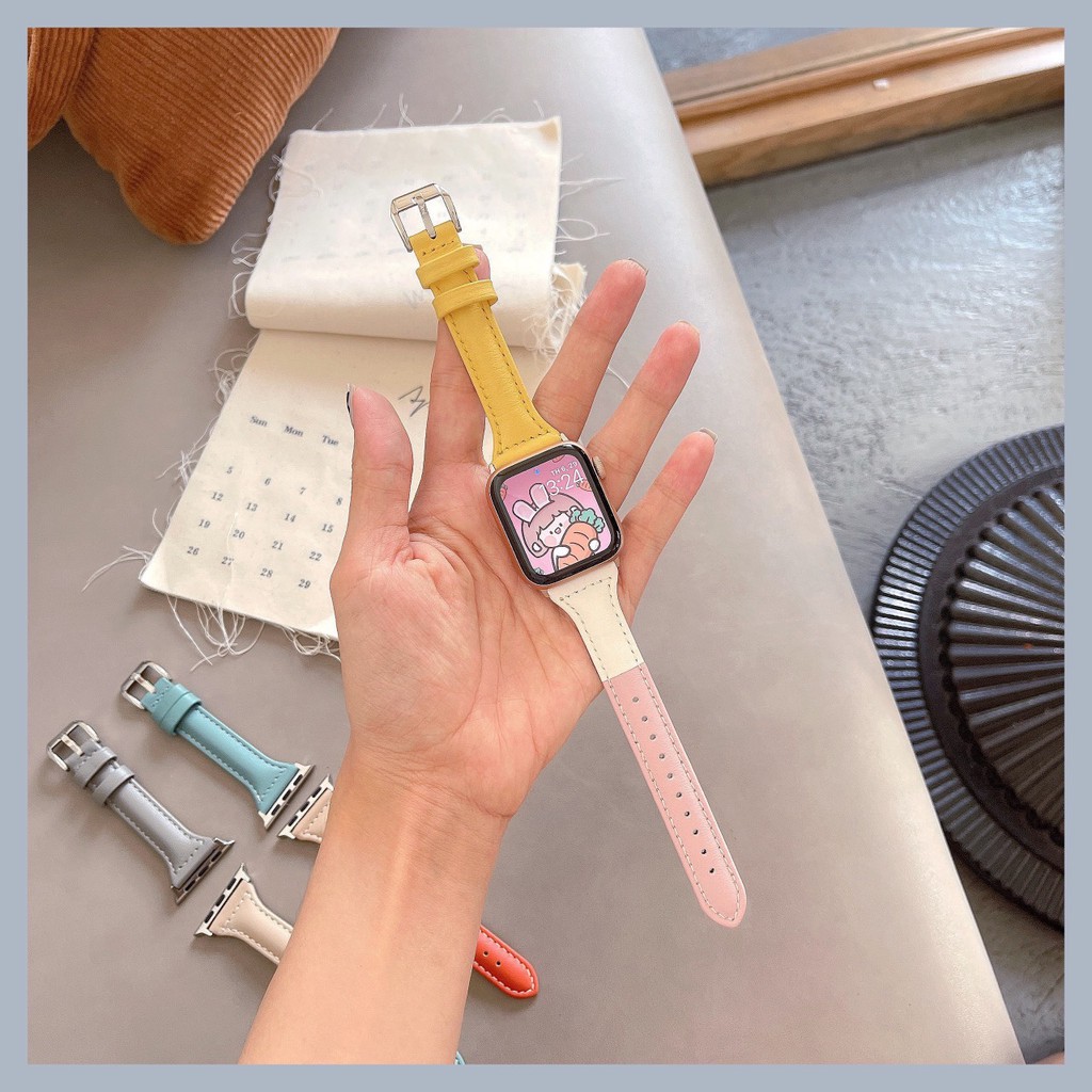 Dây da Apple watch bản nhỏ phối màu sắc 2021 cho serie 2,3,4,5,6