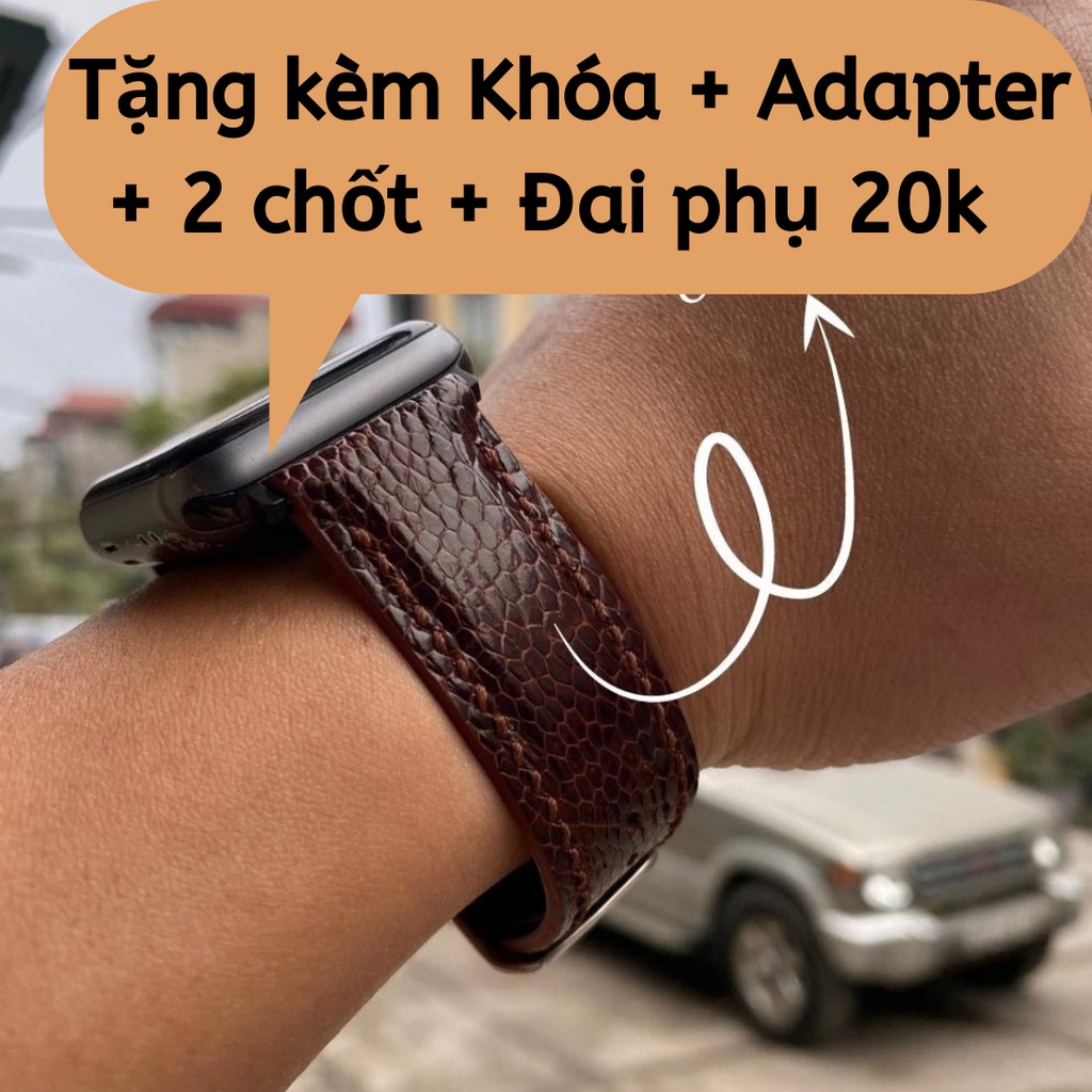 Dây da apple watch Đà điểu - D42 VNSTRAP khâu tay thủ công-lắp đồng hồ Apple series 3 series 4 series 5 series 6