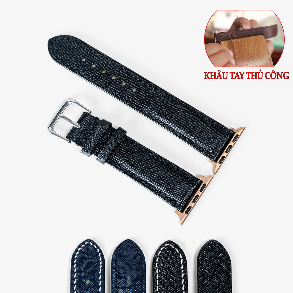 Dây da apple watch da saffiano cao cấp-khâu tay thủ công: