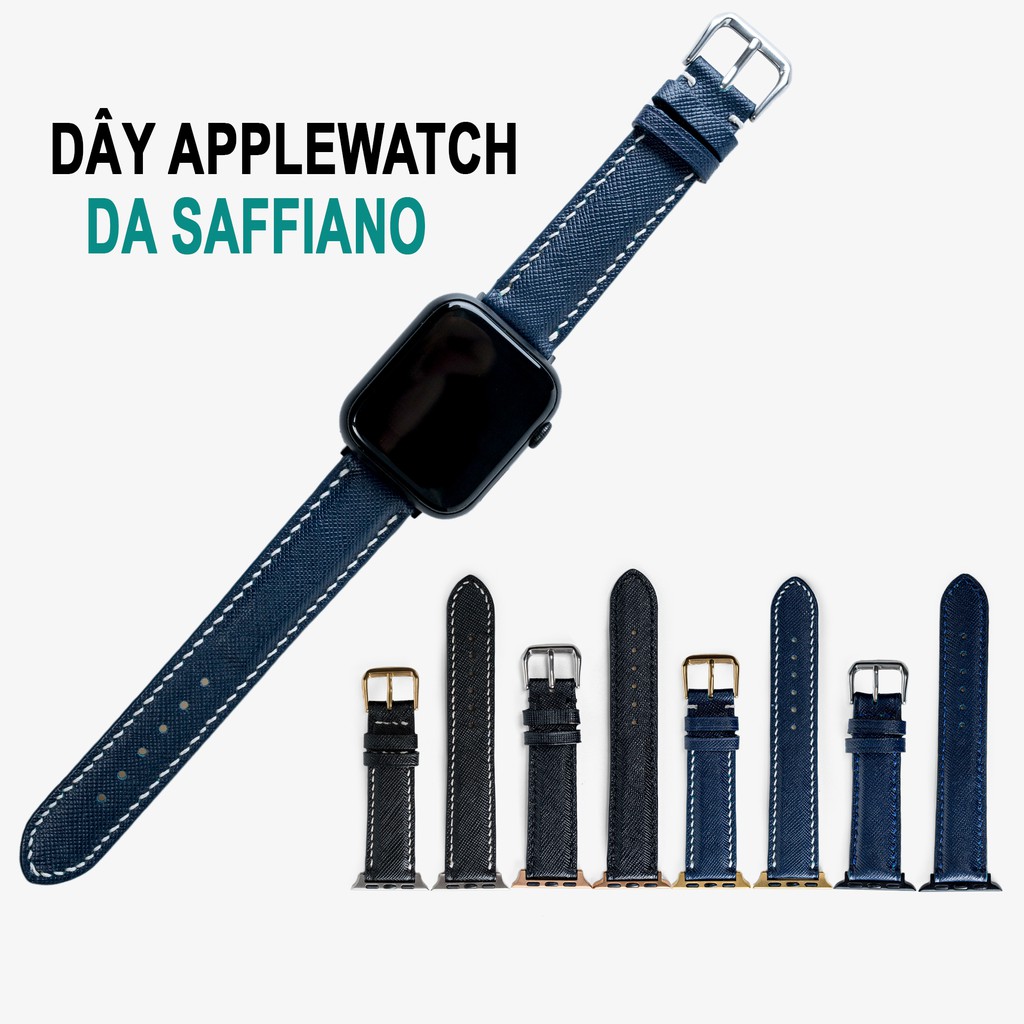 Dây da apple watch da saffiano D117 cao cấp-khâu tay thủ công- dây apple watch series 3 series 4 series 5