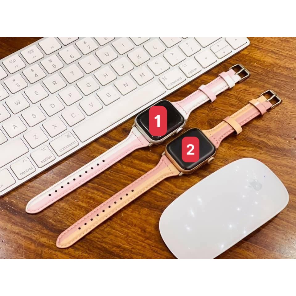 Dây da bản nhỏ sọc phối màu cho đồng hồ thông minh 38/40/42/44mm
