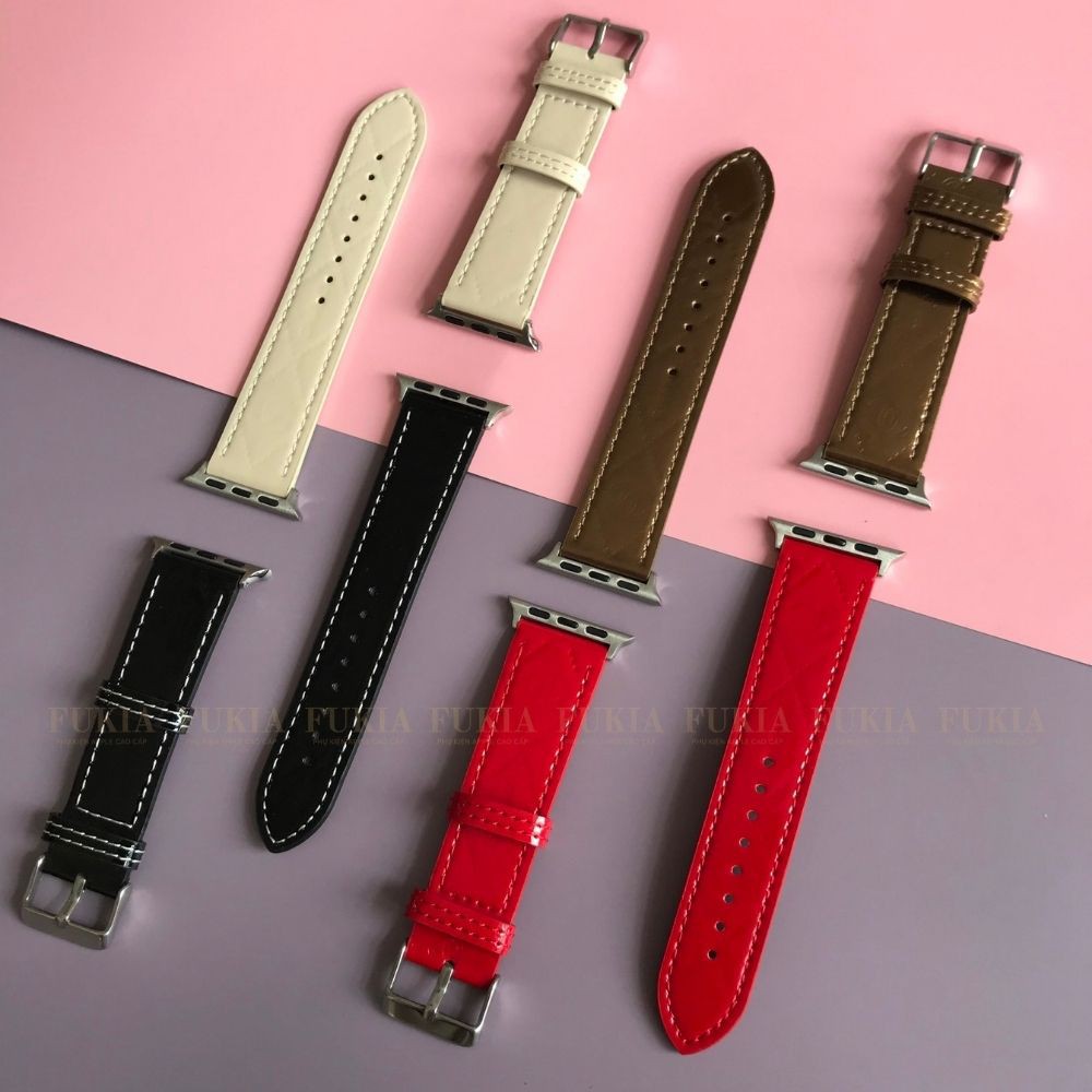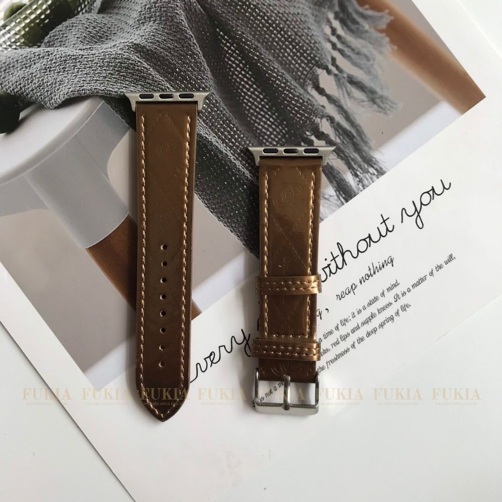 FUKIA cam kết: Dây da C H A N E L bóng dành cho Apple Watch đồng hồ thông minh Series 1/2/3/4/5/6/7/SE size 38/40/41/42/44/45mm
