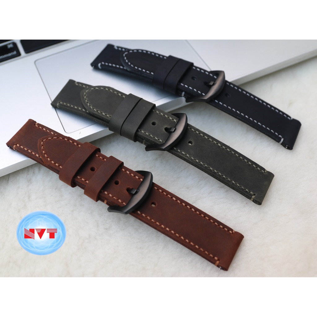 Giới thiệu Dây Da Đồng Hồ Da Bò Sáp Vintage Handmade, Dây đeo bằng da cổ điển chốt thông minh thay thế SmartWatch