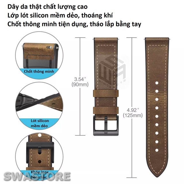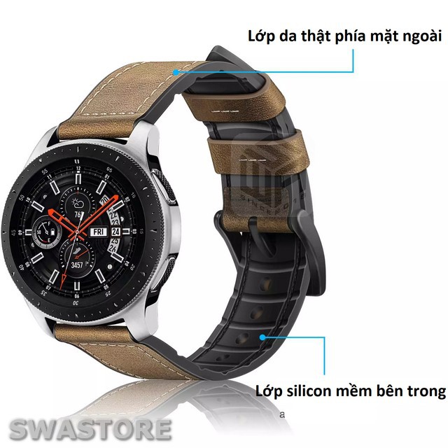 Giới thiệu Dây da đồng hồ Galaxy Watch Active 3 4 40mm 42mm 44mm 46mm da thật lót silicon có rãnh thoáng khí, SWASTORE DD01