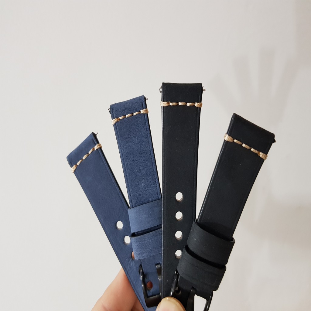 - Bộ hộp dây da đồng hồ full box gồm 2 cặp dây màu xanh và màu đen nên dễ dàng thay đổi phong cách đồng hồ bạn đeo