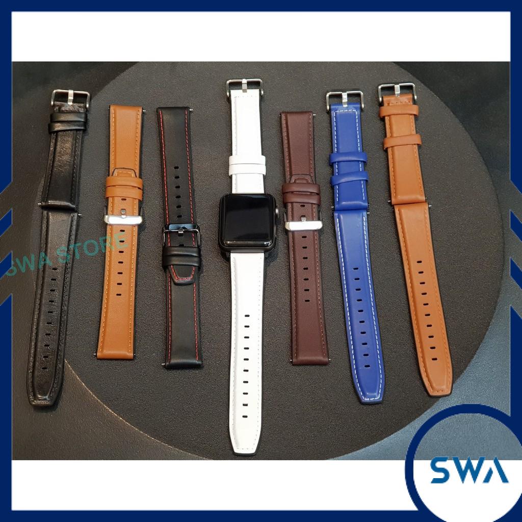 Dây da đồng hồ thông minh kiểu hybrid kết hợp da và silicon kèm chốt thông minh size 20mm và 22mm