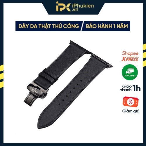 Dây Da Handmade [DA THẬT, BẢO HÀNH 1 NĂM] Swift Đen cho Apple Watch Seris 1/2/3/4/5/6/7