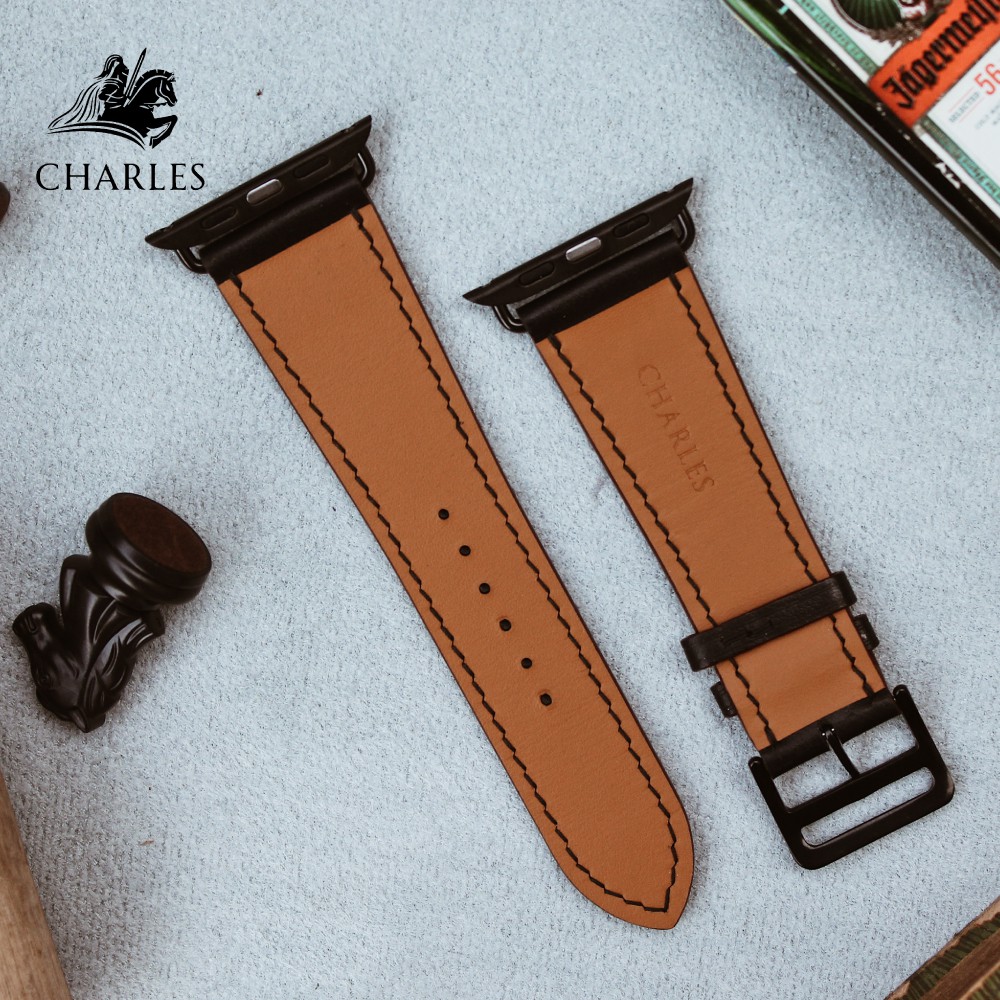 Dây da Nappa CHARLES dây cho Apple Watch Series 1/2/3/4/5/6 | Nappa Đen size Nam 42/44
