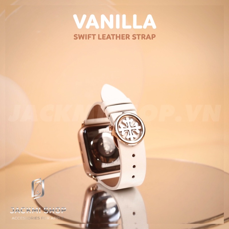 Giới thiệu [DÂY DA THẬT] DÂY DA BÊ SWIFT MAY TAY THỦ CÔNG MÀU TRẮNG VANILLA KHÓA PATEK CHO APPLE WATCH SERIES 1=>6 (BẢO HÀNH 1 NĂM)