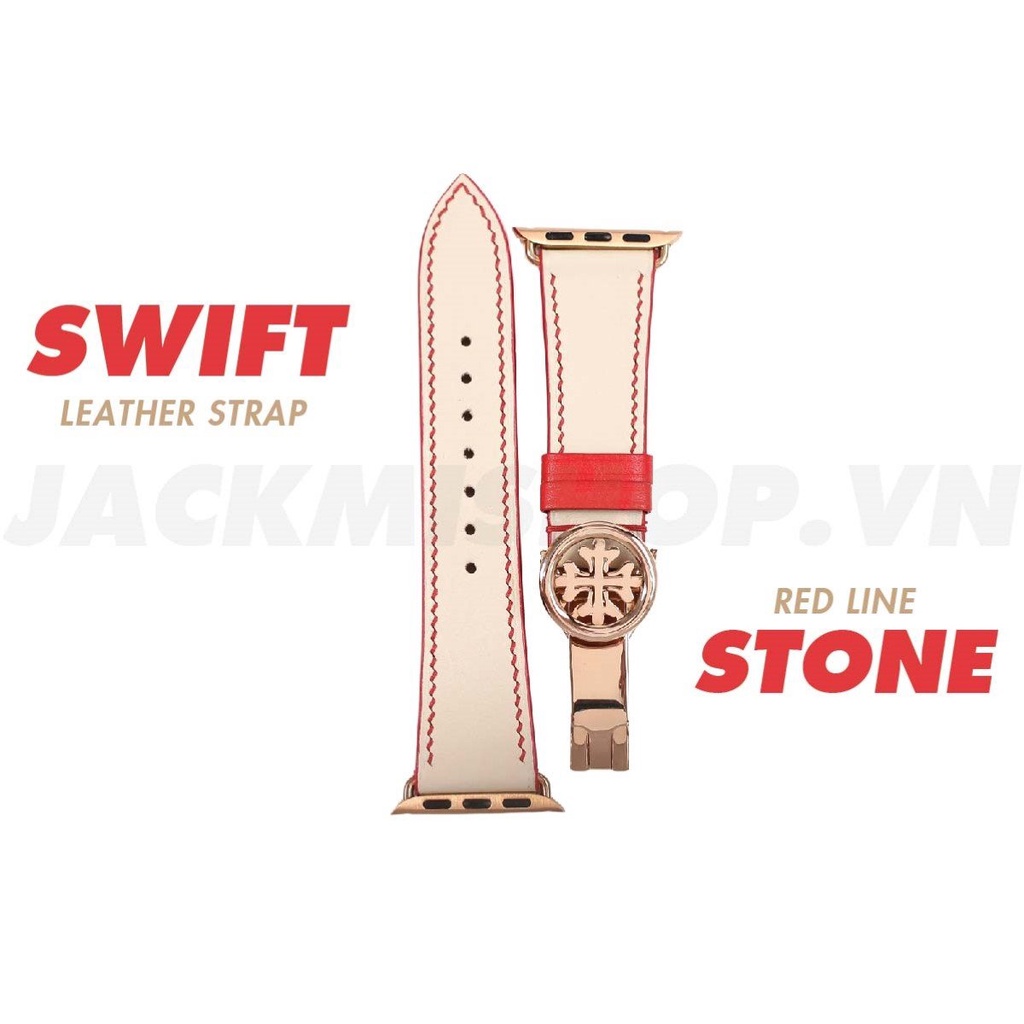 [DÂY DA THẬT] DÂY DA BÊ SWIFT MAY TAY THỦ CÔNG MÀU KEM CHỈ ĐỎ KHÓA PATEK CHO APPLE WATCH SERIES 1=>6 (BẢO HÀNH 1 NĂM)