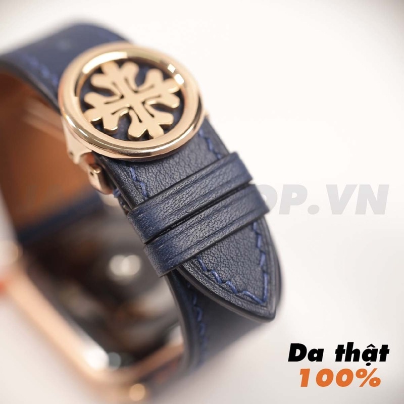 [DÂY DA THẬT] DÂY DA BÊ SWIFT MAY TAY THỦ CÔNG MÀU DARK BLUE KHÓA PATEK CHO APPLE WATCH SERIES 1=>6 (BẢO HÀNH 1 NĂM)
