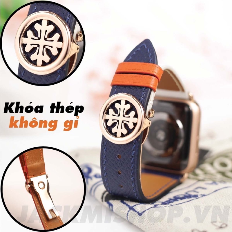 [DÂY DA THẬT] DÂY DA EPSOM MAY TAY THỦ CÔNG MÀU XANH NAVY/TRẮNG KHÓA PATEK CHO APPLE WATCH SERIES 1=>6 (BẢO HÀNH 1 NĂM)