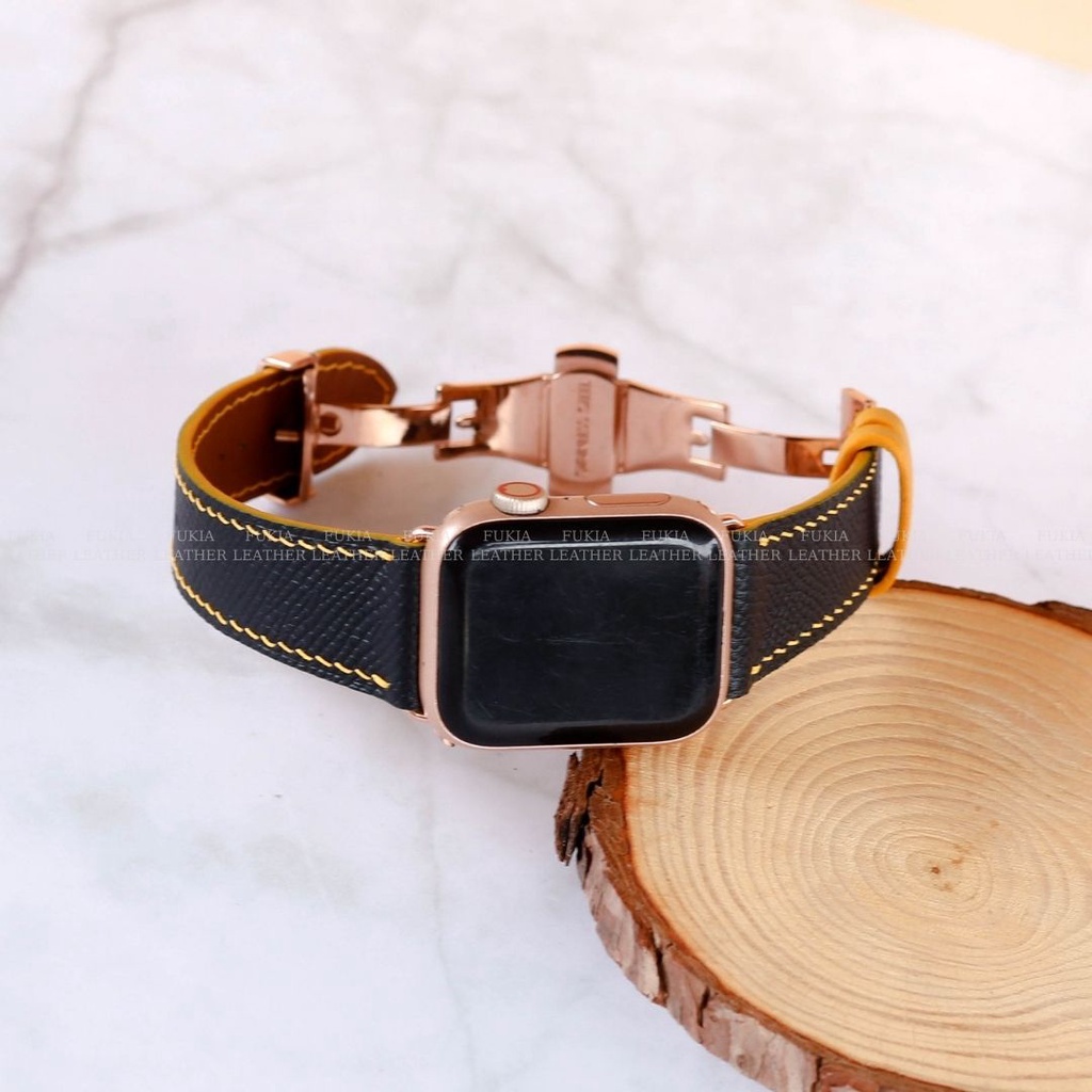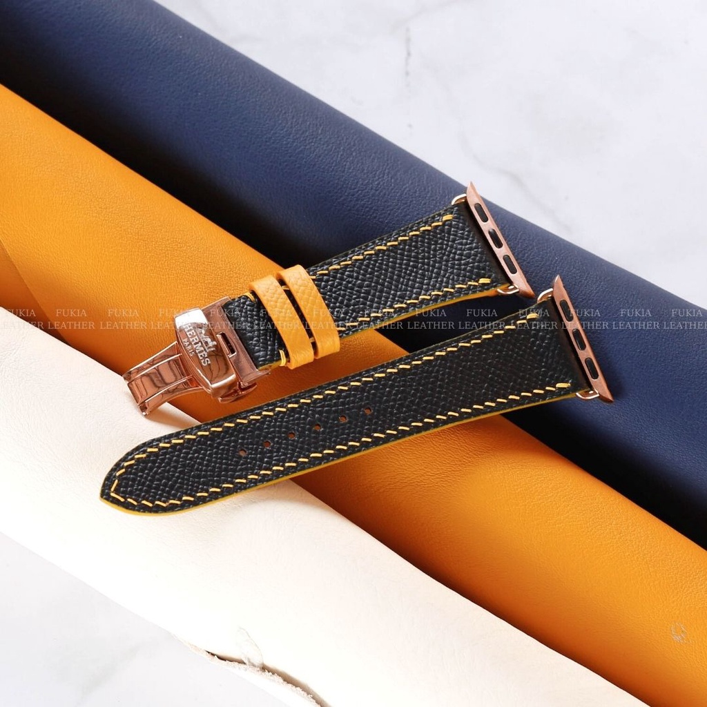 Giới thiệu Dây da thủ công Epsom Đen Mix Vàng dành cho Apple Watch, đồng hồ thông minh, đồng hồ cơ