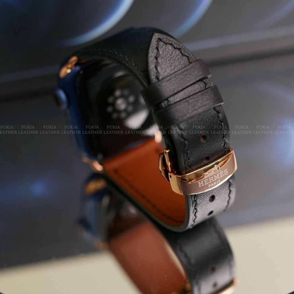 Dây da thủ công Swift Đen dành cho Apple Watch, đồng hồ thông minh, đồng hồ cơ MIZADO