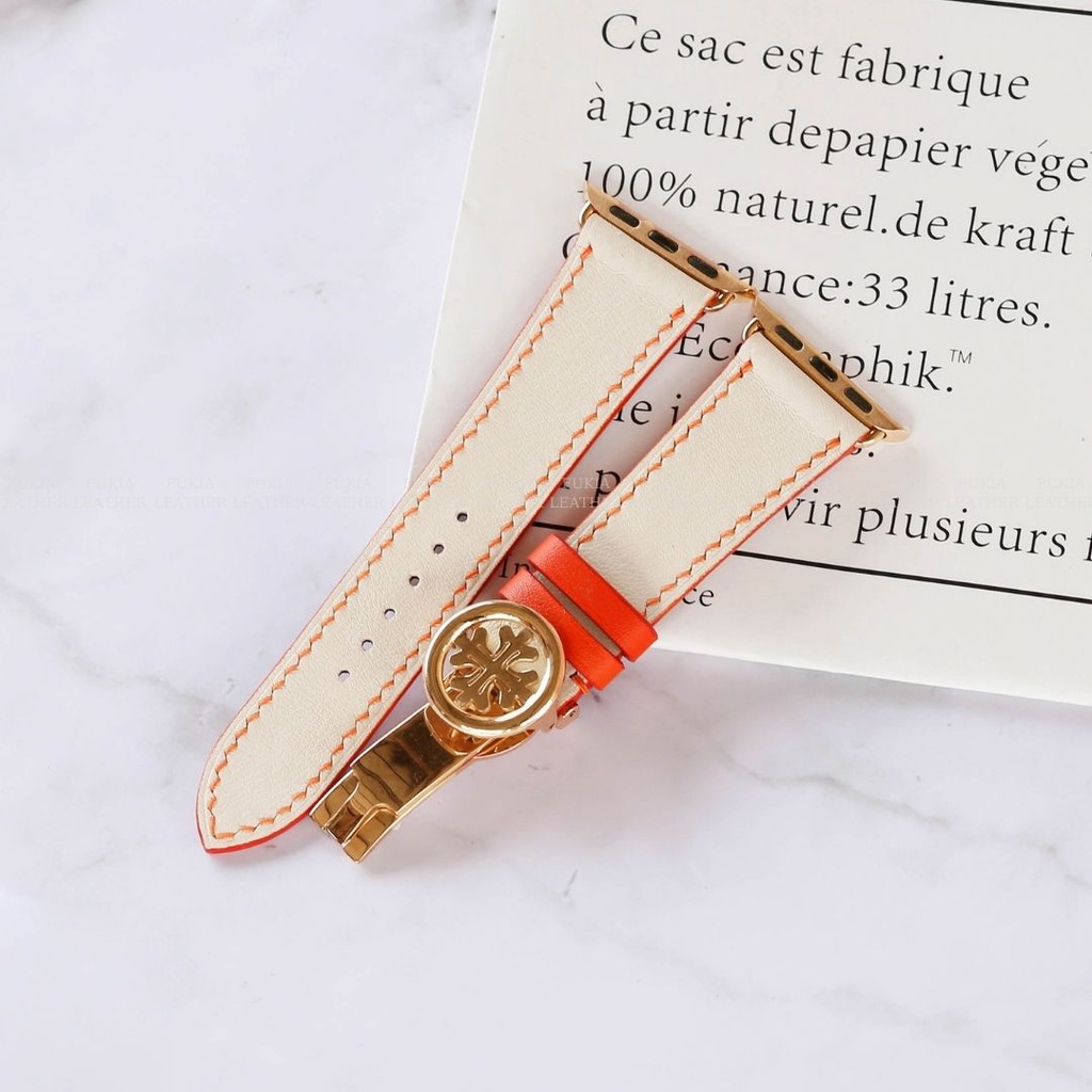 Giới thiệu Dây da thủ công Swift Trắng Mix Cam dành cho Apple Watch, đồng hồ thông minh, đồng hồ cơ