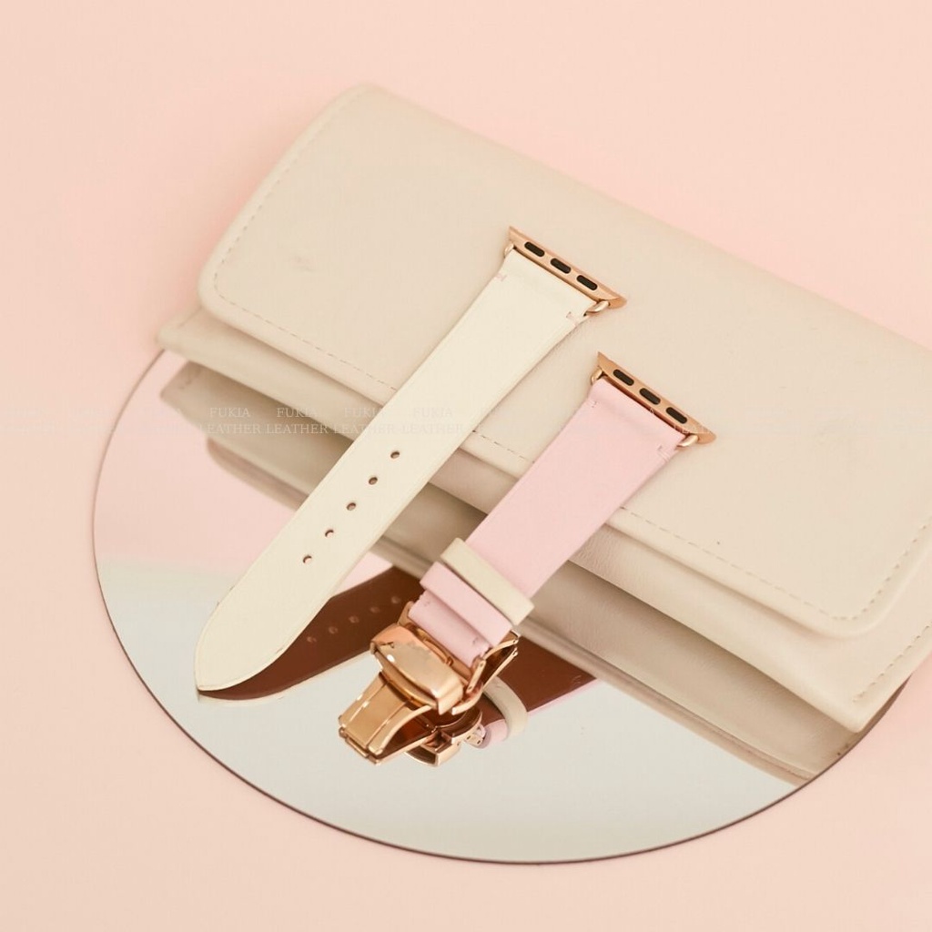 Dây da thủ công Swift Trắng Mix Hồng dành cho Apple Watch, đồng hồ thông minh, đồng hồ cơ