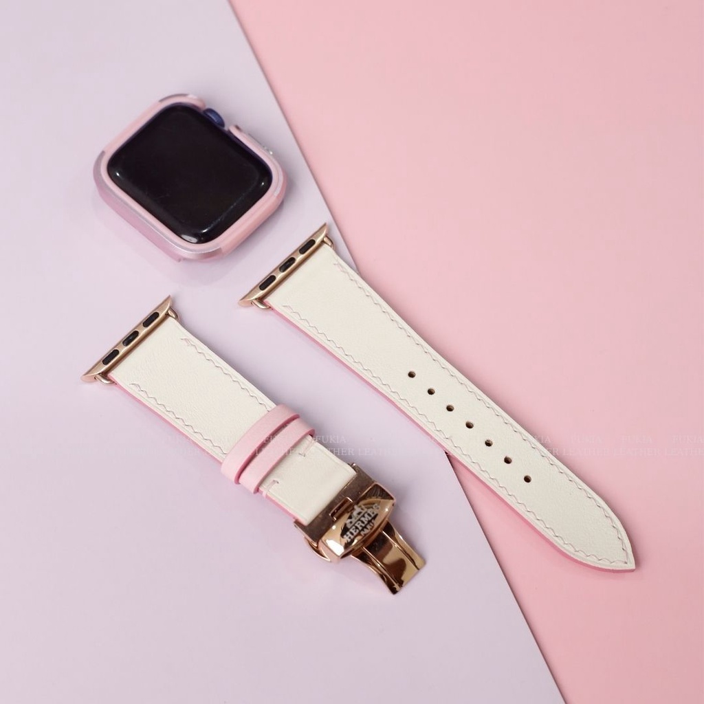 Giới thiệu Dây da thủ công Swift Trắng Viền Hồng dành cho Apple Watch, đồng hồ thông minh, đồng hồ cơ