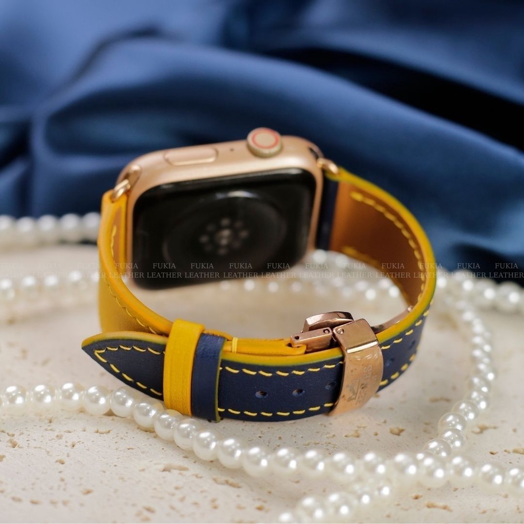 Điện Thoại & Phụ Kiện > Phụ kiện > Phụ kiện cho đồng hồ thông minh || Dây da thủ công Swift Xanh Navy Mix Vàng dành cho Apple Watch, đồng hồ thông minh, đồng hồ cơCòn hàng
