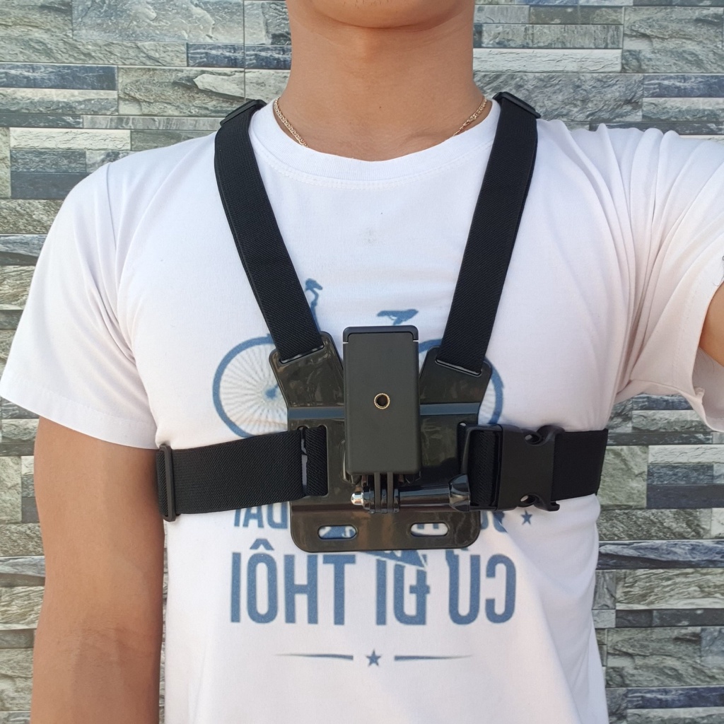Bộ dây đeo ngực cho điện thoại làm camera hành trình và GPS, lợi thế của dây đeo ngực là độ ổn định ít rung hơn so với gắn điện thoại lên các nơi khác như trên xe độ an toàn cao hơn. Ngoài ra dây có thể dùng cho các camera hành động khác như GoPro, SJCAM, Yi xiaomi, RE camera …