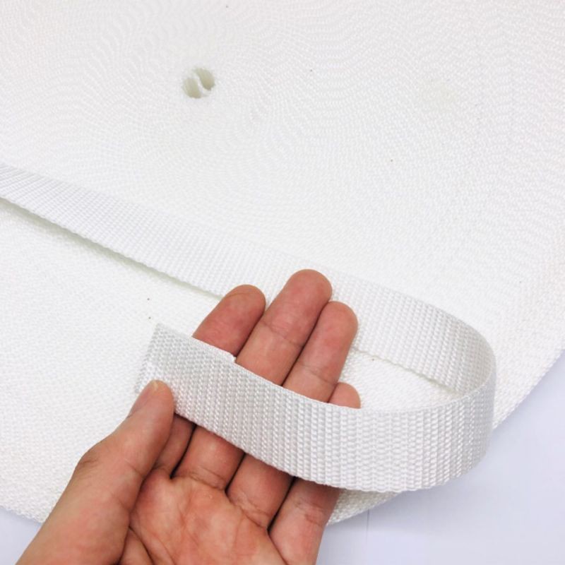 Dây đai dệt trắng, dây quai túi xách 2.5 cm/ cuộn 10 mét