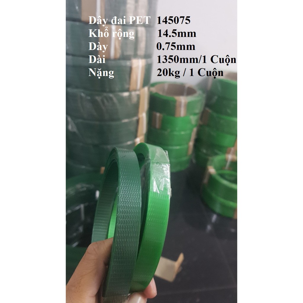 Giới thiệu Dây đai PET Mã 145075 Bản rộng 14.5mm Dày 0.75mm Cuộn Nặng 20kg