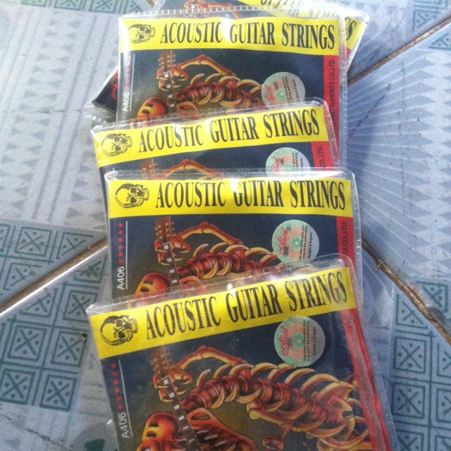 Bộ day đàn Acoustic ( day kim loại) gồm 4 day inox cuốn đồng 2 dây thép . Thứ tự từ 1-6 .Dây 1 kí hiệu = E.