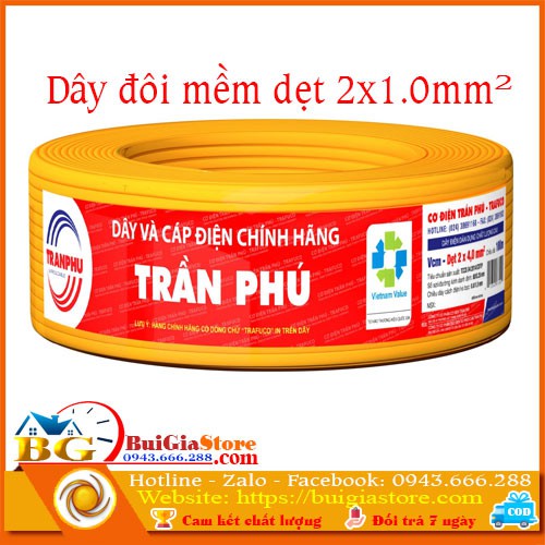 Dây dẫn điện Trần Phú bọc dẹt 2x1.0 cuộn 100 mét (chính hãng)