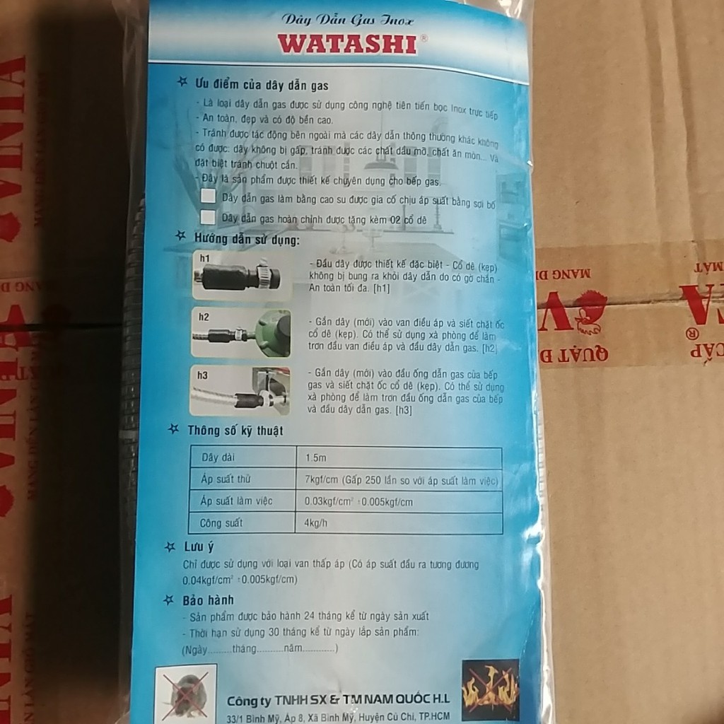 Dây dẫn gas Inox Watashi - Bảo hành 24 tháng.
