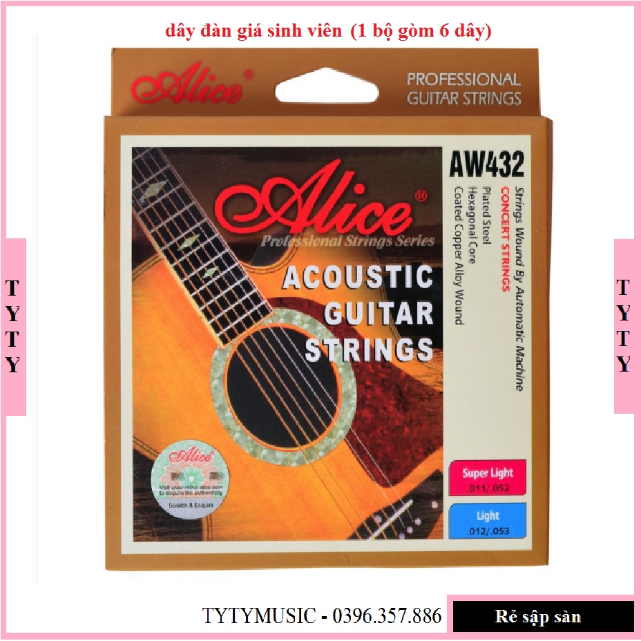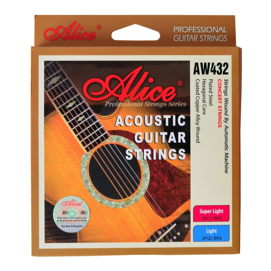 AW432 là mẫu dây tầm trung của hãng Alice, dây 1 và 2 được làm bằng thép đặc biệt sơn tĩnh điện, dây 3-4-5-6 lõi bằng thép đặc biệt hình lục giác bọc ngoài bằng dây đồng tỉ lệ 85/15, với dây Bronze 85/15 cho âm thanh sáng, rõ nét hơn các dây có tỉ lệ Bronze 80/20 phù hợp với những người chơi thích tiếng guitar sáng trong trẻo, hoặc các dòng đàn guitar được làm bằng gỗ ép cho ra chất tiếng bí, không giòn tiếng.Thông số hai mẫu dây thông dụng nhất những người chơi guitar thường dùng
