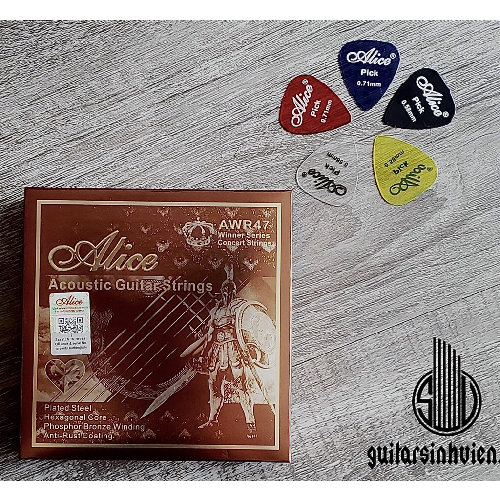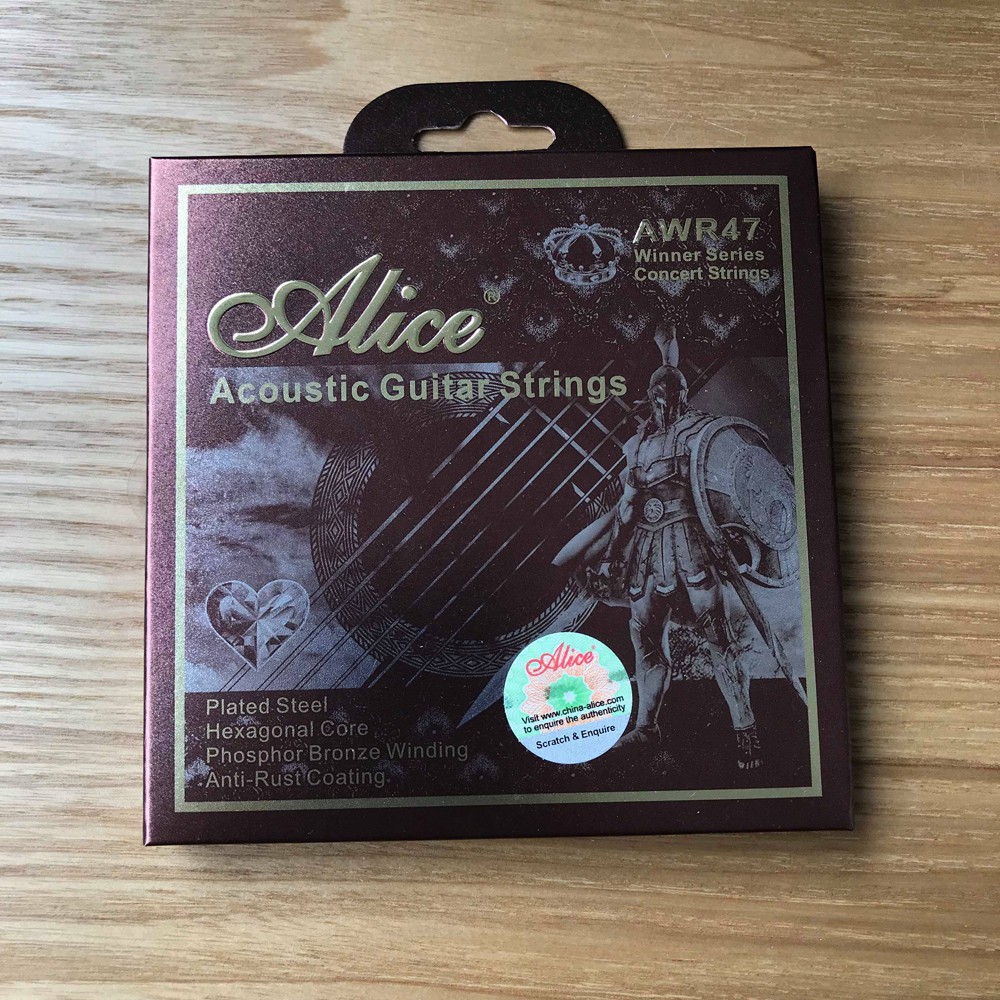 Sở thích & Sưu tầm > Nhạc Cụ & Phụ Kiện > Phụ Kiện Âm Nhạc || Dây đàn guitar acoustic Alice AWR47 - Bộ 6 dây màu đồng tặng 1 pickCòn hàng