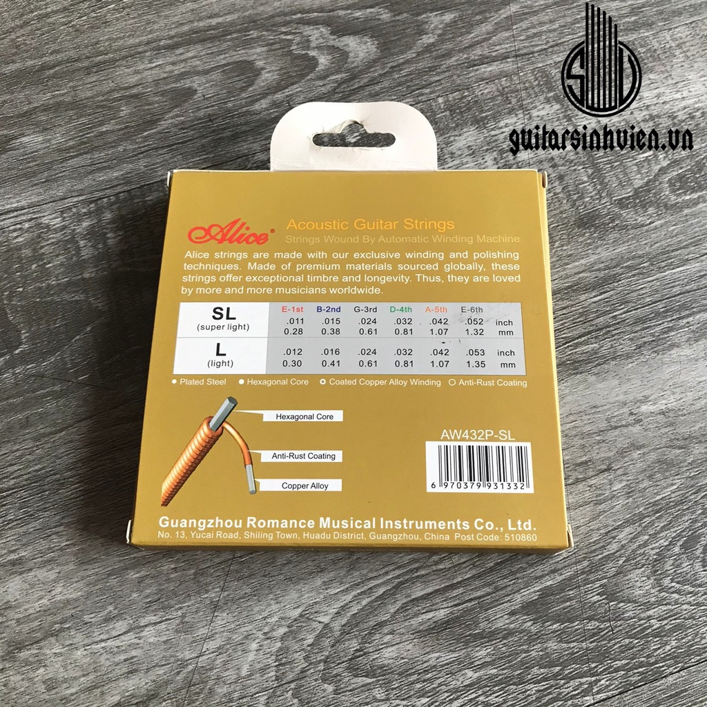 DÂY GUITAR ACOUSTIC AW432 AlICE=> Là dòng sản phẩm dây đồng của hãng Alice, dây hợp cho những bạn đầu tư cho cây đàn tầm trung, âm thanh vang và độ chuẩn âm ổn định. Dây có màu vàng đồng rất dễ hợp với nhiều màu và mẫu đàn.