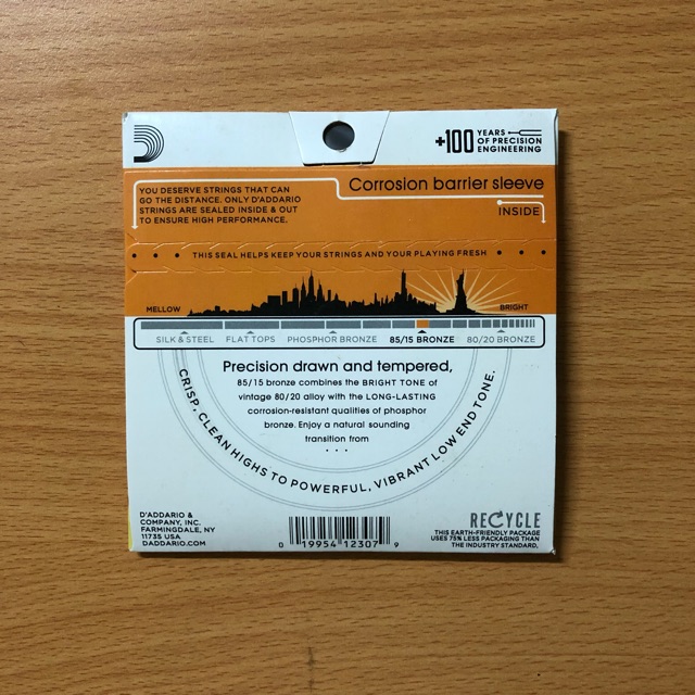 – D’Addario EZ910 được cuốn đồng tỉ lệ 85/15 cung cấp cho cây đàn của bạn âm thanh tươi sáng. Dây đồng 85/15 kết hợp với độ sáng nét của dây hợp kim 80/20, cùng với độ bền tuyệt vời của các dây đồng phosphor