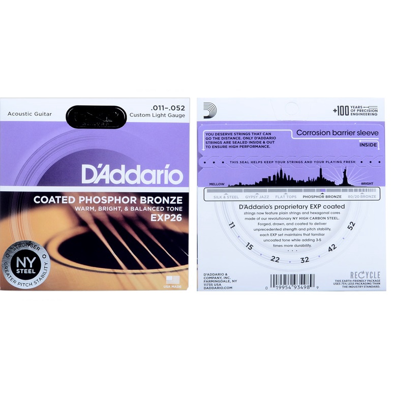 Giới thiệu Dây Đàn Guitar Acoustic D'Addario EXP26 I Dành Cho Đàn Acoustic Size 11