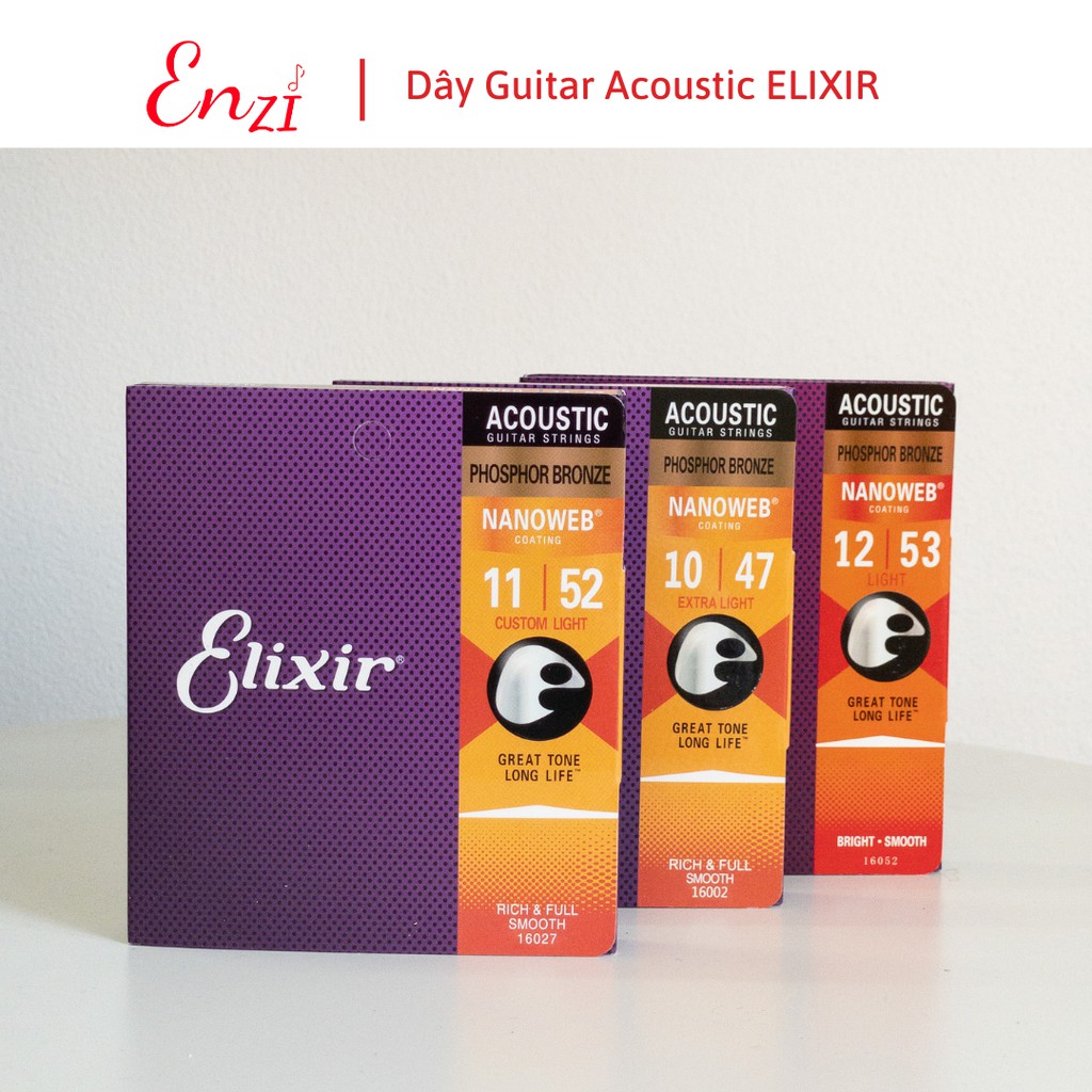 Dây đàn guitar acoustic elixir 16027 Phosphor Bronze Nanoweb cỡ 11 dây đàn Elixir 16052 và 16002 chính hãng