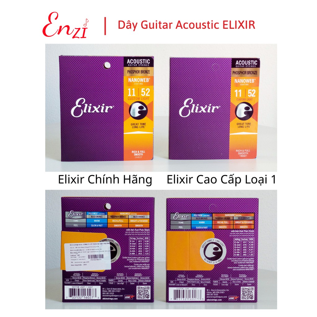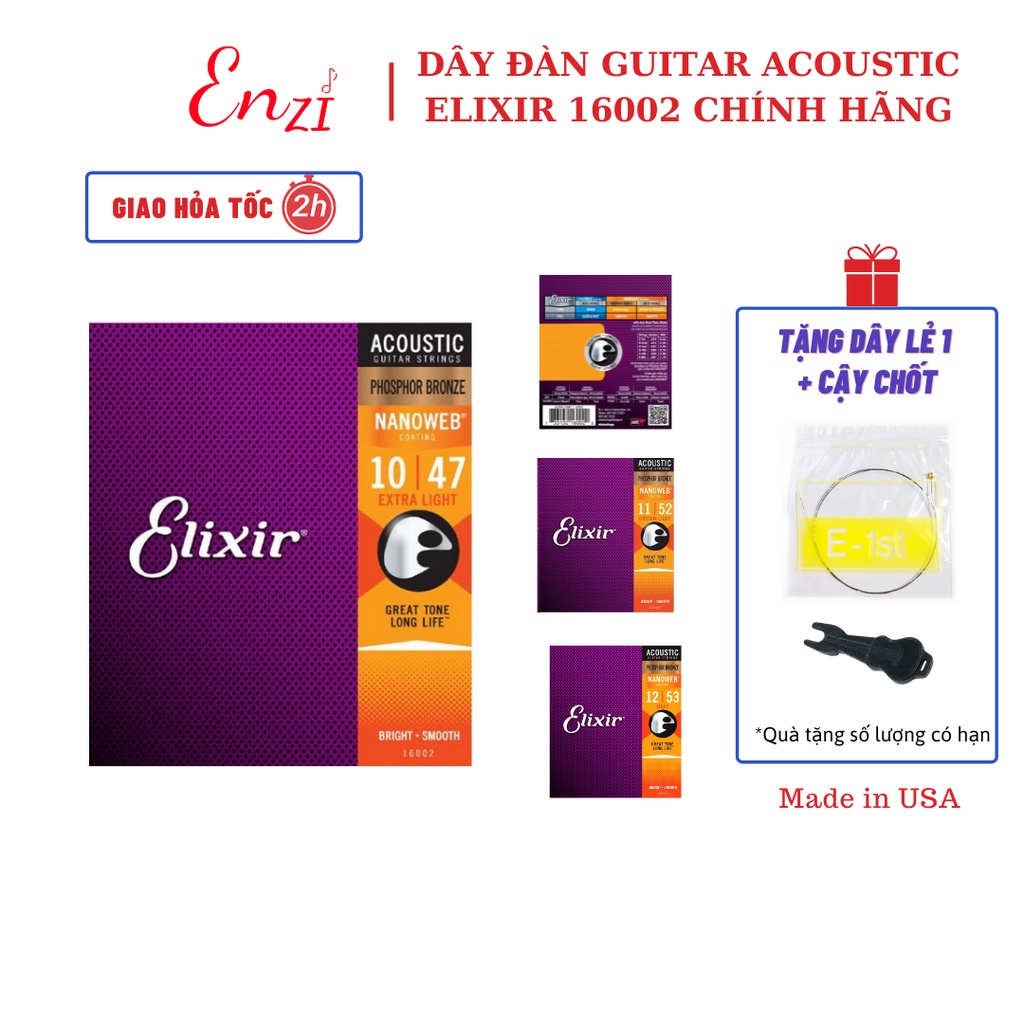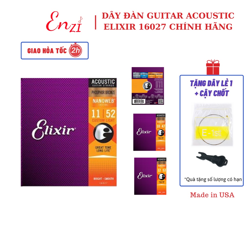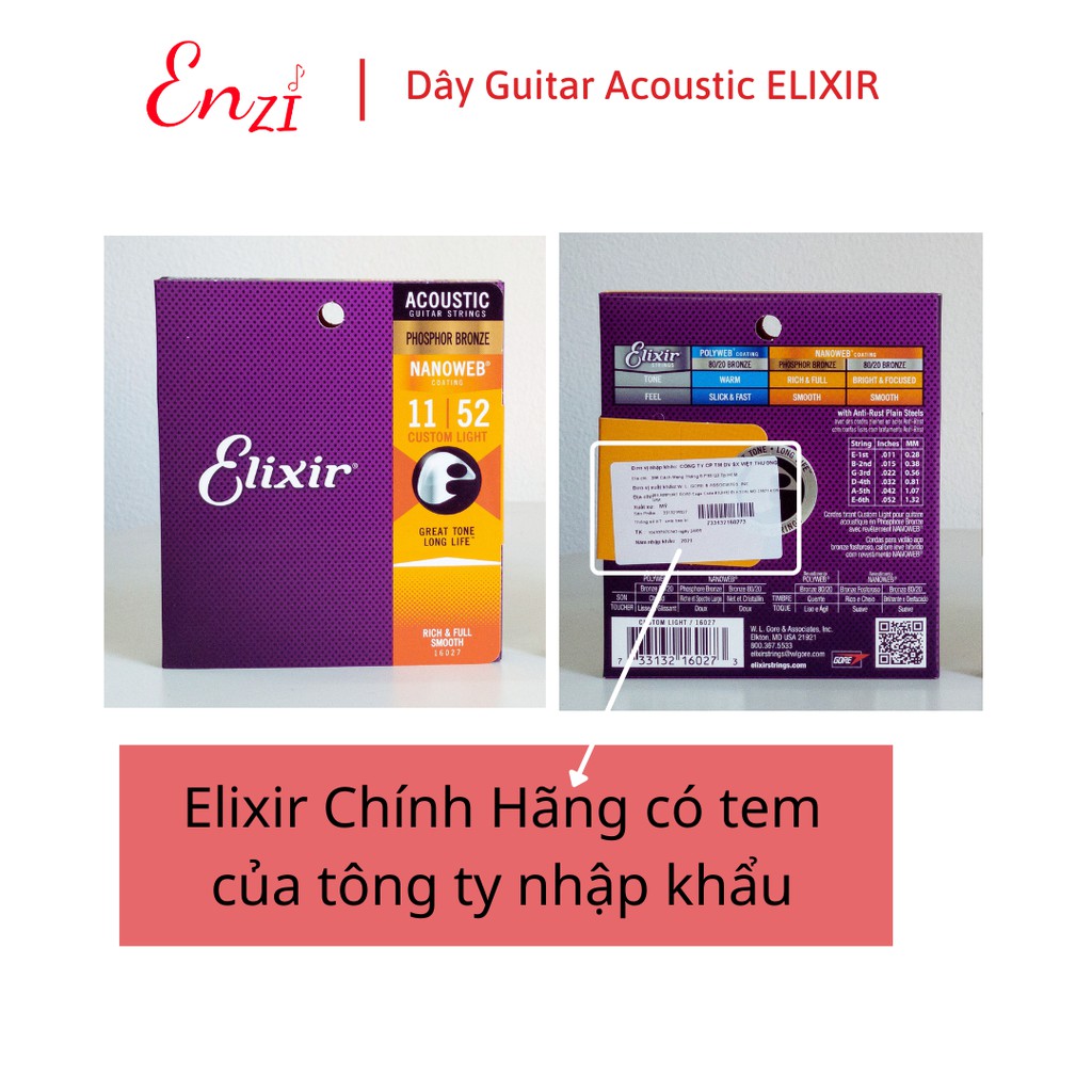 Dây đàn guitar acoustic elixir 16027 Phosphor Bronze Nanoweb cỡ 11 dây đàn Elixir 16052 và 16002 chính hãngShop có 2 loại dây Elixir chính hãng nhập khẩu và Dây đàn Elixir cao cấp