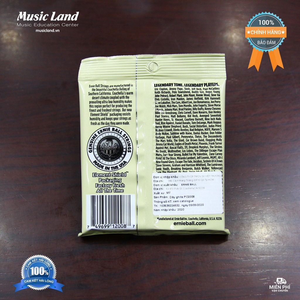- Cam kết Dây Đàn Guitar Acoustic Ernie Ball 2008 là hàng nhập khẩu chính hãng Ernie Ball của USA.