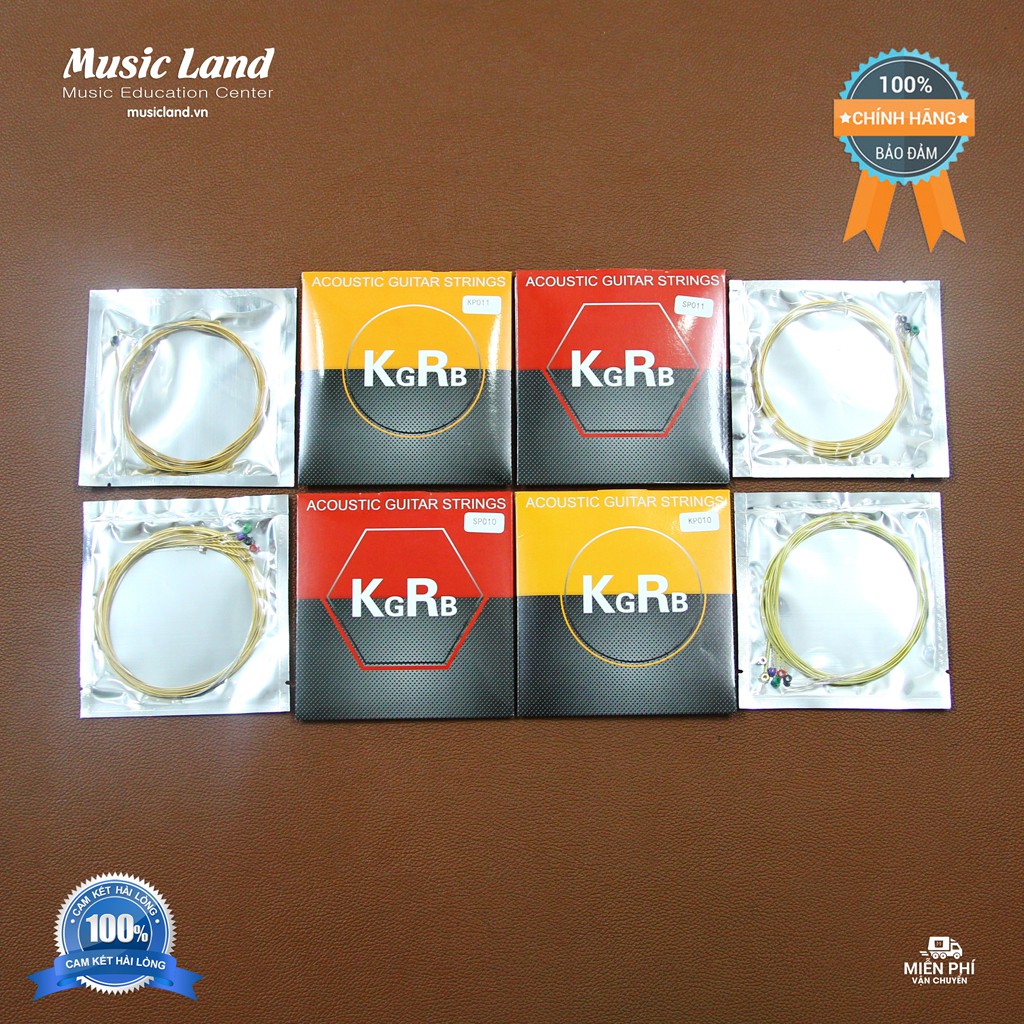 - Dây đàn Guitar Acoustic KgRb là dòng sản phẩm dây phosphor pha đồng (Phosphor-Bronze) của hãng KgRb , kích cỡ 11 và dây size 10 (độ căng của các dây không giống nhau, hai dây cao - dây treble - có độ căng thấp hơn hai dây giữa với mục đích vừa tạo được chất âm sâu cho tiếng đàn vừa giúp người chơi dễ dàng bend nốt)