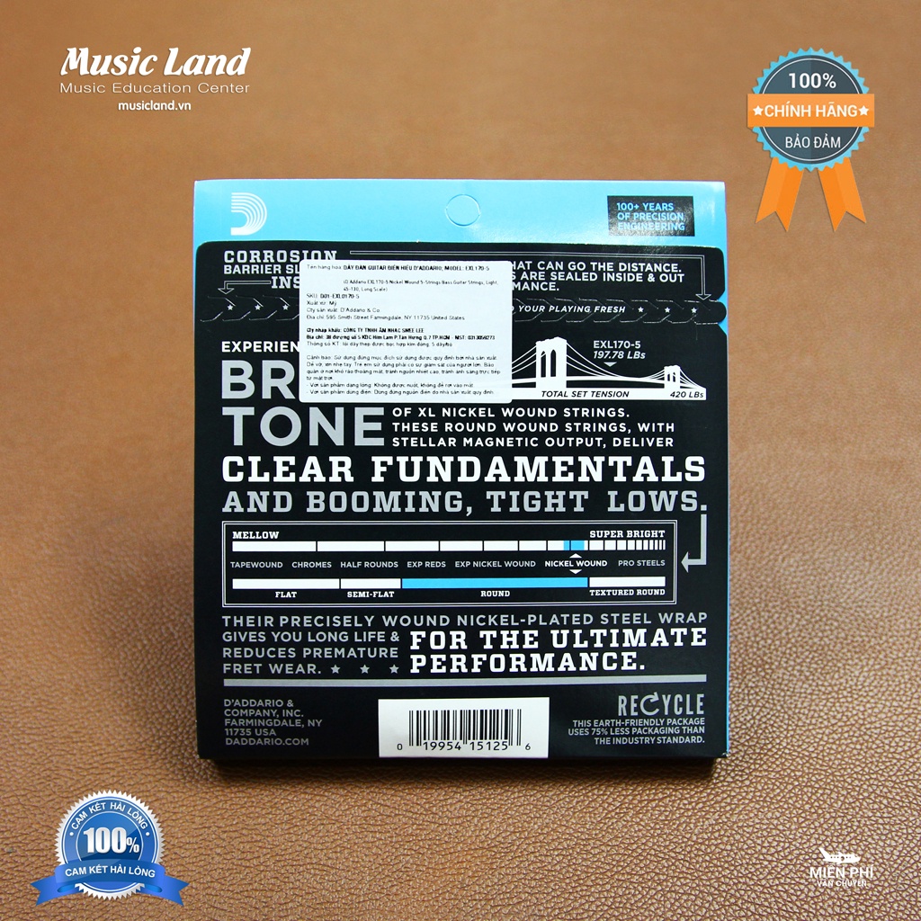 - Cam kết hàng Dây Đàn Guitar Bass D’Addario EXL170-5 nhập khẩu chính hãng D’Addario của U.S.A.