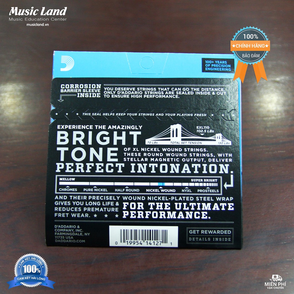 - Bộ dây đàn Guitar điện D'Addario EXL-110 mang đến sự kết hợp lý tưởng của giai điệu, linh hoạt và độ bền cao, có khả năng chống ăn mòn và chịu lực tốt, trải qua quá trình chế tác bằng công nghệ hiện đại của hãng D’Addario.
