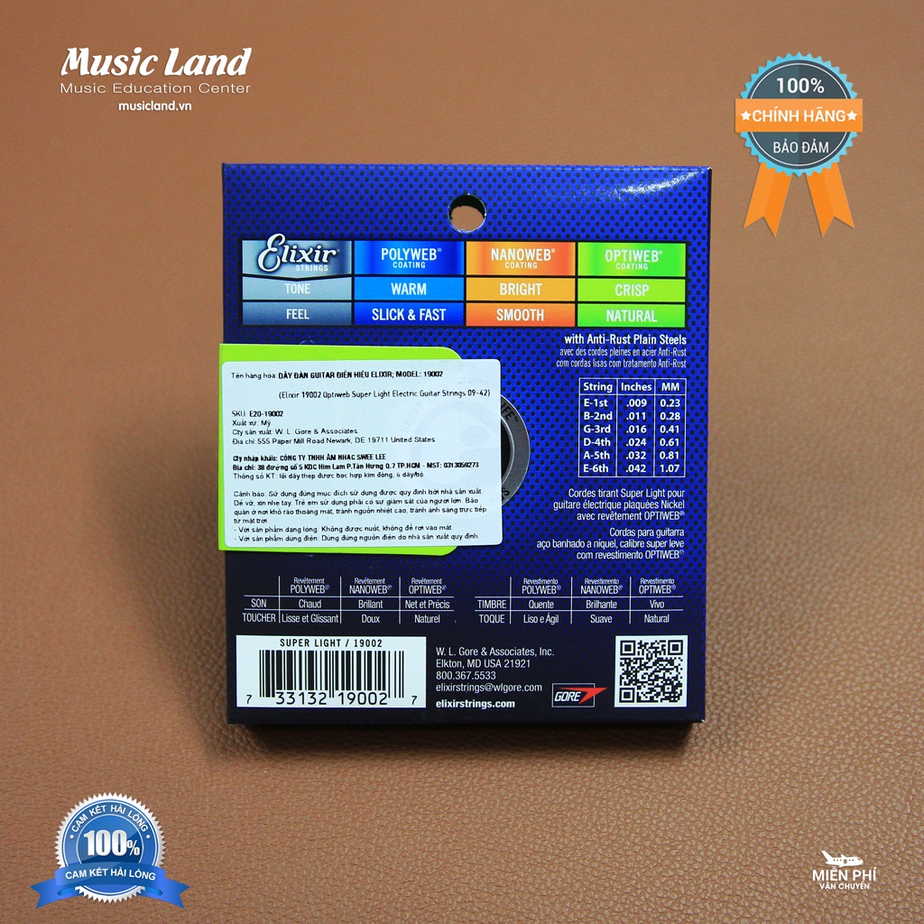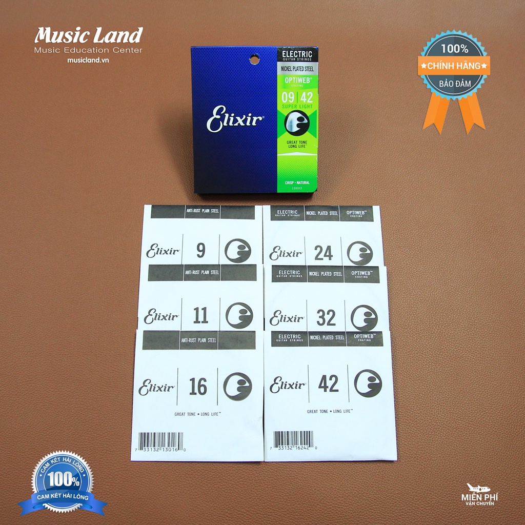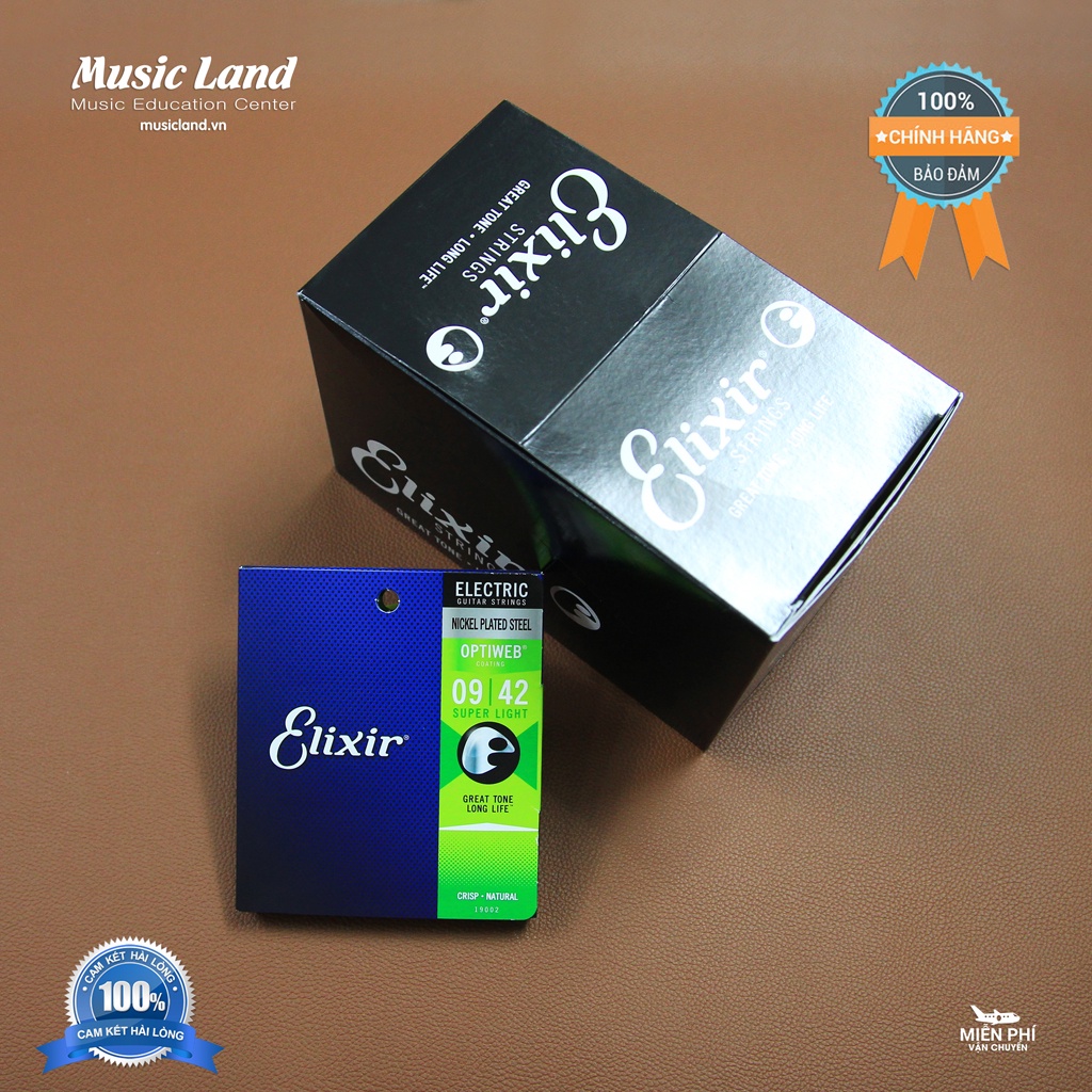 - Dây Đàn Guitar Điện Elixir 19002 của thương hiệu Elixir là một trong những sản phẩm dây đàn nổi tiếng nằm trong phân khúc cao cấp trên thị trường. Điểm đặc trưng của sản phẩm nằm ở lớp phủ theo công nghệ độc quyền do Elixir nghiên cứu sản xuất với quá trình thử nghiệm và tiếp nhận ý kiến từ 5,000 nghệ sĩ trên toàn thế giới, mục tiêu là mang lại sản phẩm dây đàn tối ưu thỏa mãn nhu cầu của chính những người chơi nhạc khắt khe nhất. Dây đàn do Elixir sản xuất được nhiều nghệ sĩ lớn trên thế giới tin tưởng sử dụng, trong đó có nghệ sĩ Guitar Jamie Maccoll, Wayne Sermon và Jack Antonoff.