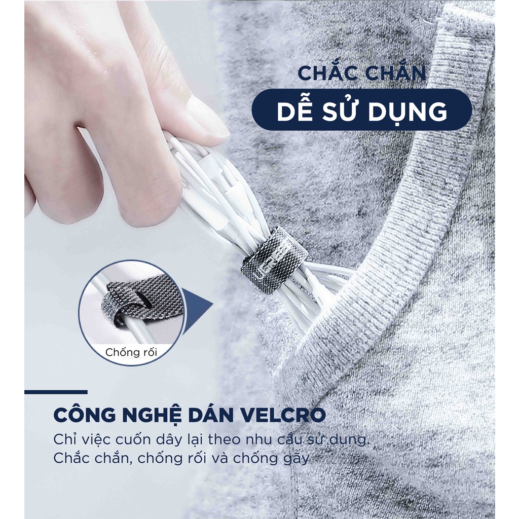 - Dây dán Velcro tiện dụng dùng để buộc các loại dây cho gọn như: dây tai nghe, dây sạc điện thoại, máy tính...