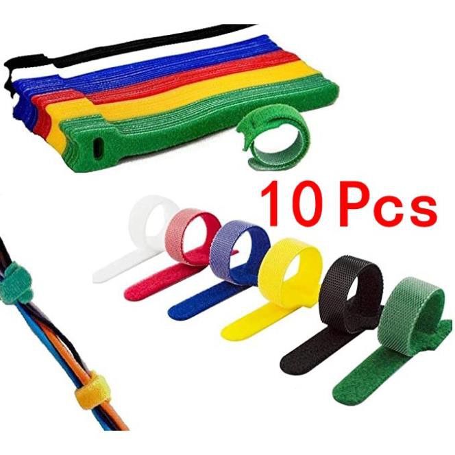 Velcro, dây dán dính 2 mặt, dây buộc gọn dây điện dây cáp có lỗ xỏ nhiều màuDây cuộn gọn dây điện hai mặt tự dính nhiều màu sắc