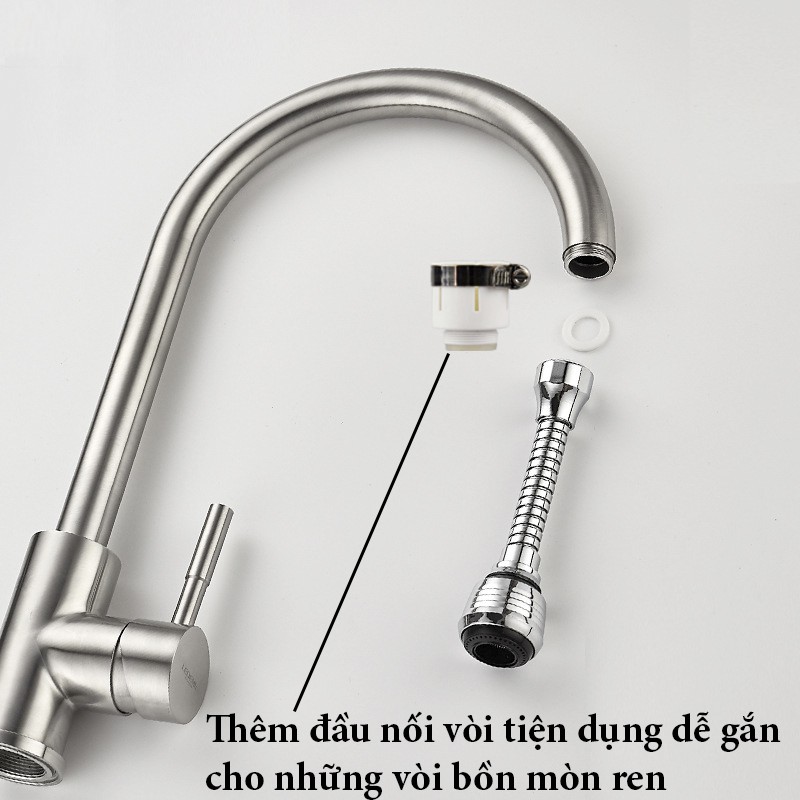 Vòi bồn rửa thường lắp cố định gây khó cho việc rửa và vệ sinh, vì vậy gắn dây đầu vòi bồn rửa có thể xoay các hướng