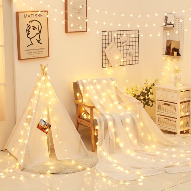 Ngoài ra shop có cả dây đèn ngôi sao dài 1,5met gồm 10 ngôi sao giá 19k .