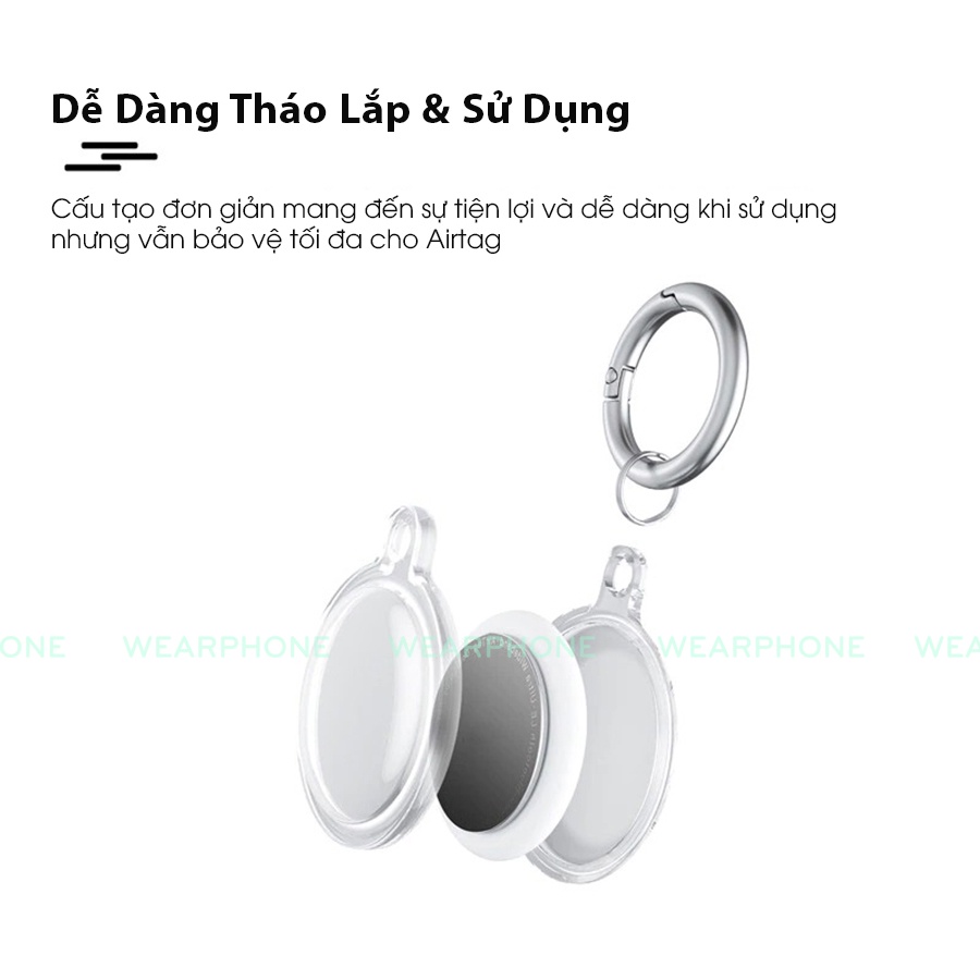 Giới thiệu Dây đeo Airtag Móc khoá Air tag Silicon trong suốt bao full airtag bảo vệ thiết bị chống va đập Wearphone