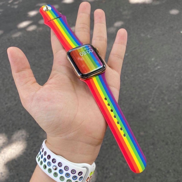 Giới thiệu Dây Đeo Apple Watch 5/4/3/2/1 Dẻo Silicon Cầu Vòng 7 Màu size 38/40mm 42/44mm