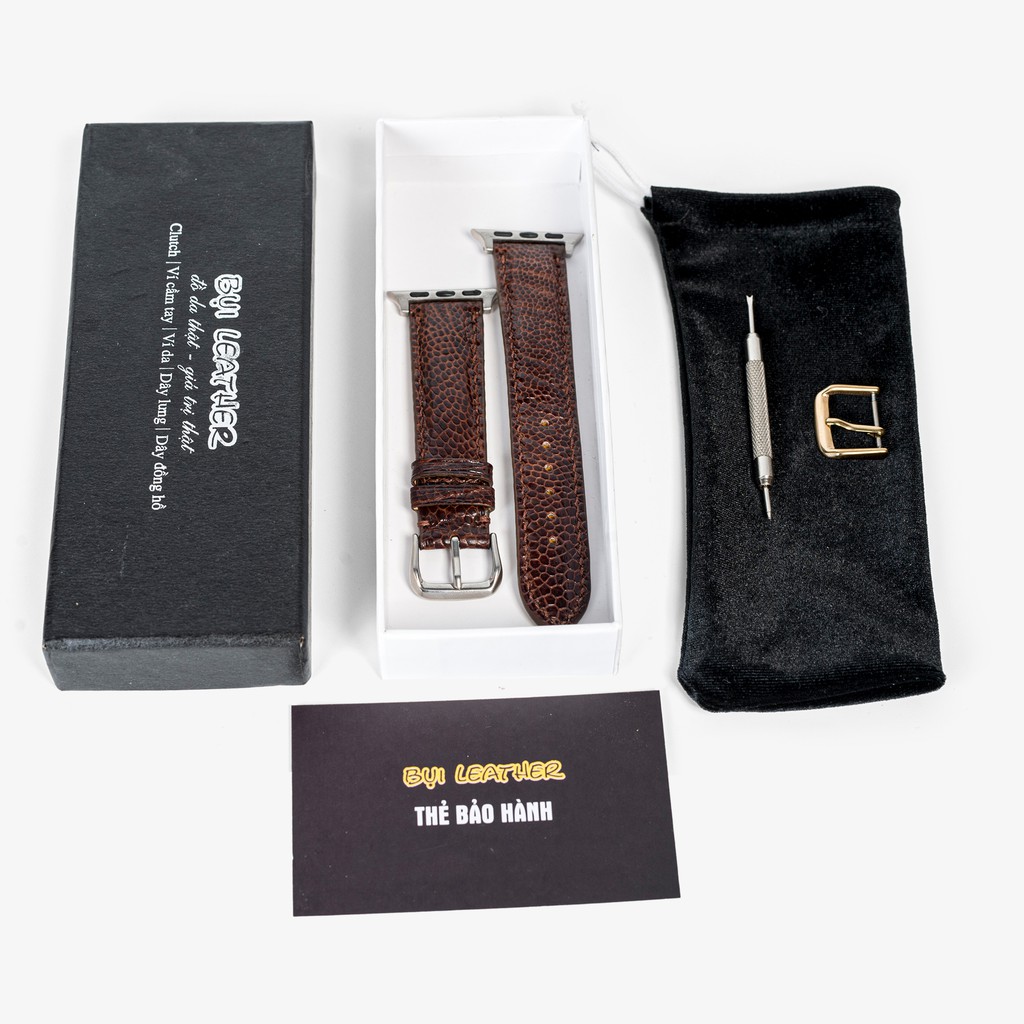 Dây đeo apple watch da đà điểu-khâu tay thủ công D109- dây apple watch series 3 series 4 series 5-Bụi leather