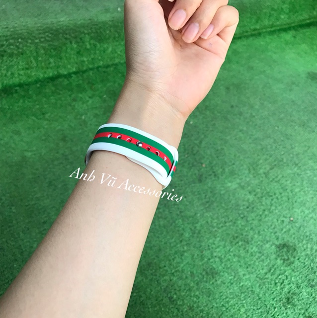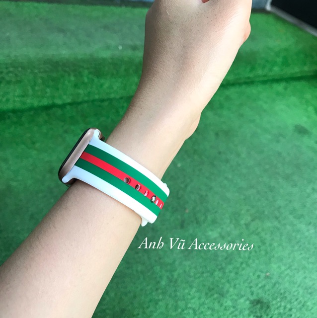 -Dây đeo Silicol Gucci 3 màu hot nhất mới đổ bộ về shop ạ-Mẫu này mix màu cực xinh luôn, dây silicol chất mềm mại, đeo thoải mái, không cứng, không bám mồ hôi.
