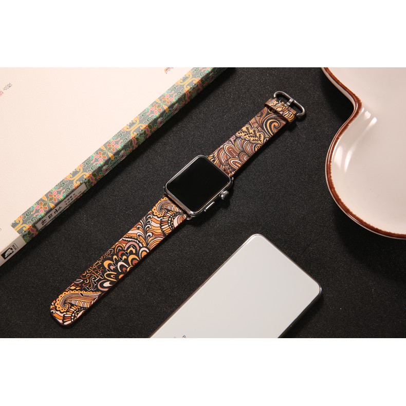 Dây đeo bằng da in họa tiết dành cho Apple Watch Series 1 2 3 4 5 6 SE 7 38mm 42mm 40mm 44mm 41mm 45mm